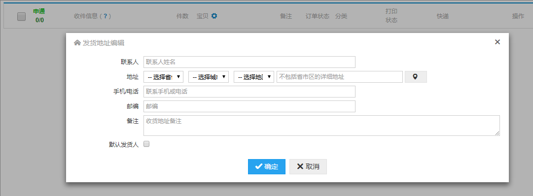 2、设置发货地址